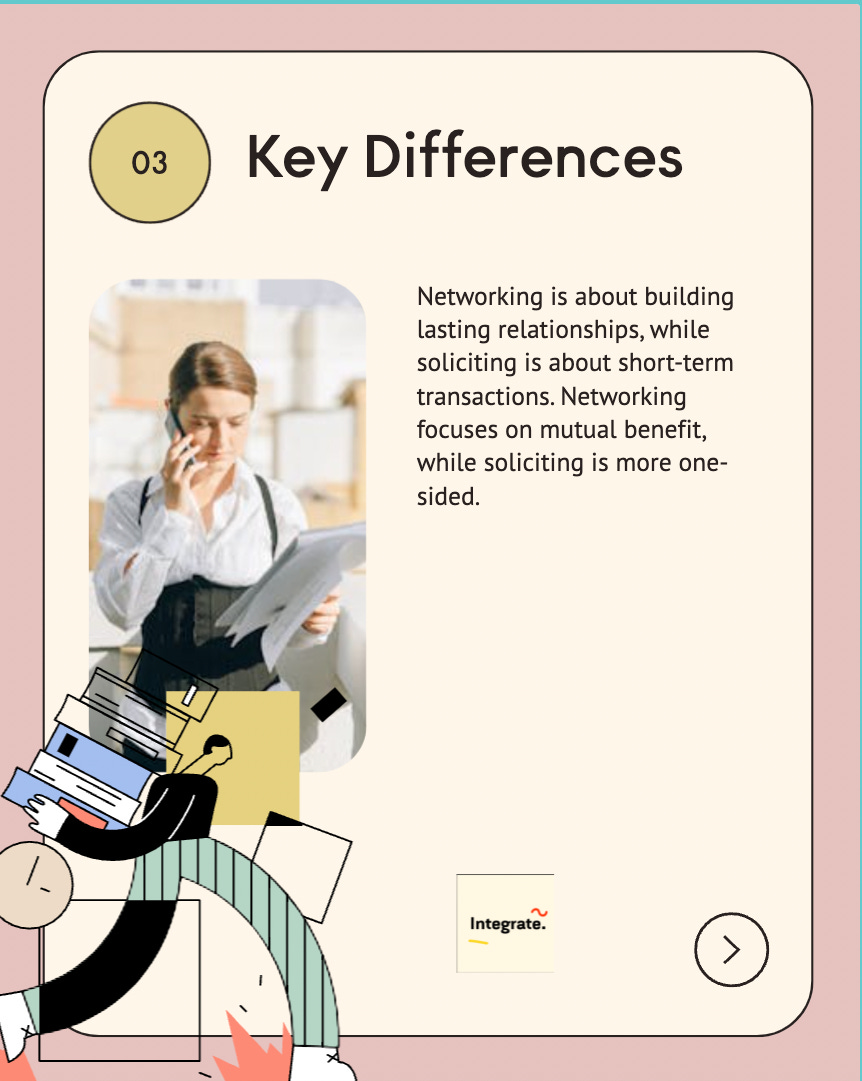 For example, a tech startup founder might attend an accelerator program and casually chat with another attendee about their day-to-day challenges. They exchange advice on improving user acquisition strategies. No services are pitched, no deals are made, but over time, this connection becomes a partnership or referral source. This is networking at its best—relationship-first, value-driven, and long-term focused.